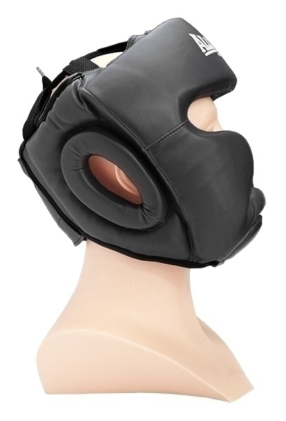 Sparingové helma s ochranou líc a brady. Pre lepšie prispôsobenie veľkosti má zapínanie na suchý zips a viazanie na šnúrku.