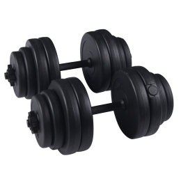 Set jednoručných nakladacích činiek pre silový tréning. Na jednoručné os môžete naložiť rôzne ťažké kotúče až do celkovej váhy 10 kg na každú činku. Závitované konce osí a matice umožňujú jednoduchú výmenu kotúčov a v kombinácii s protišmykovým úchopom aj bezpečný tréning. Kotúče môžete ľubovoľne kombinovať a prispôsobiť tak váhu činky svojím tréningovým potrebám. Jednoručné činky sú ideálnou pomôckou pre posilňovanie paží, chrbtových, prsných a brušných svalov.
