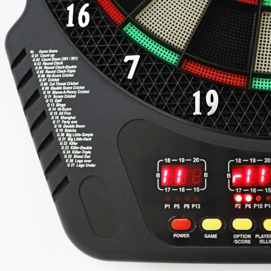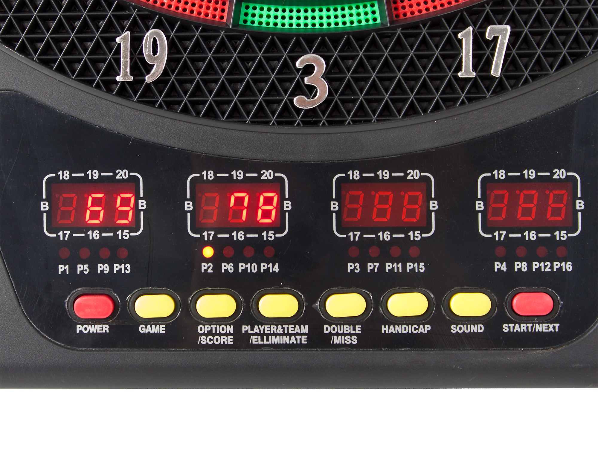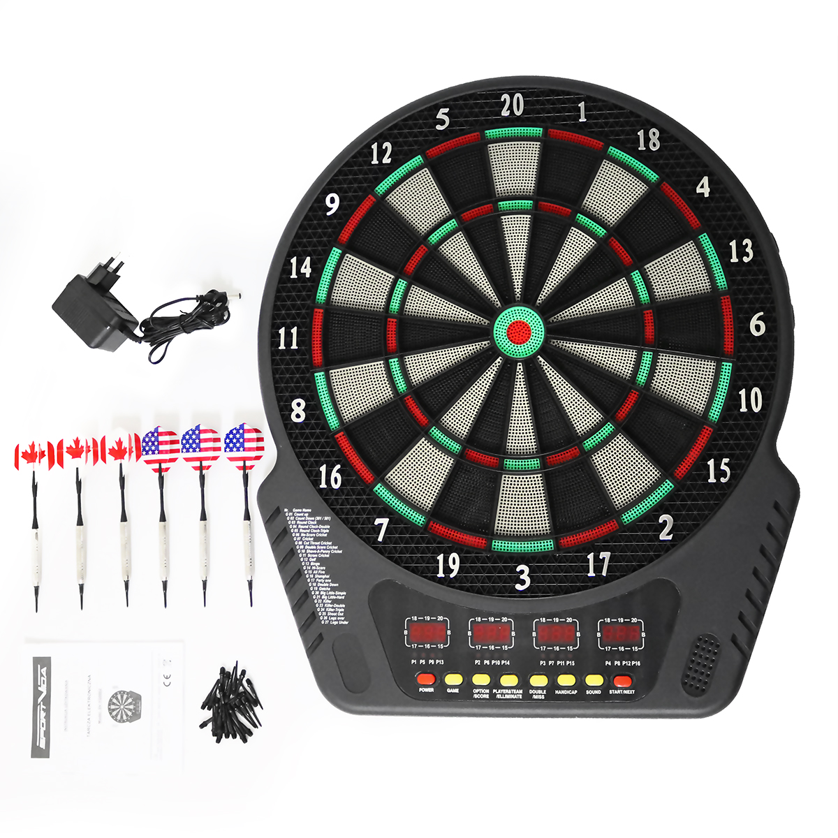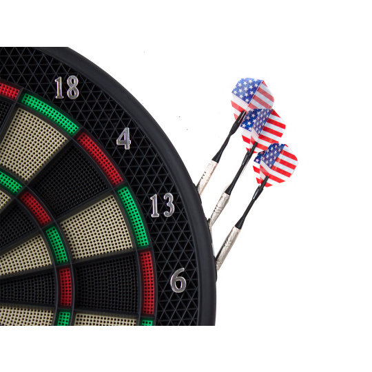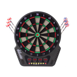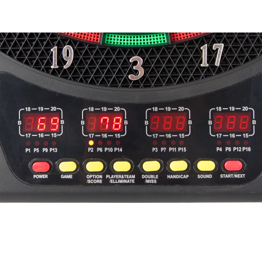 Kvalitní elektronický terč od značky Sportvida. Terč má čtyři displeje pro zobrazení aktuálního skóre. Terč lze využívat buď to na tužkové baterie nebo na kabel do zásuvky, který je součástí balení. Součástí balení jsou šipky a náhradní hroty.