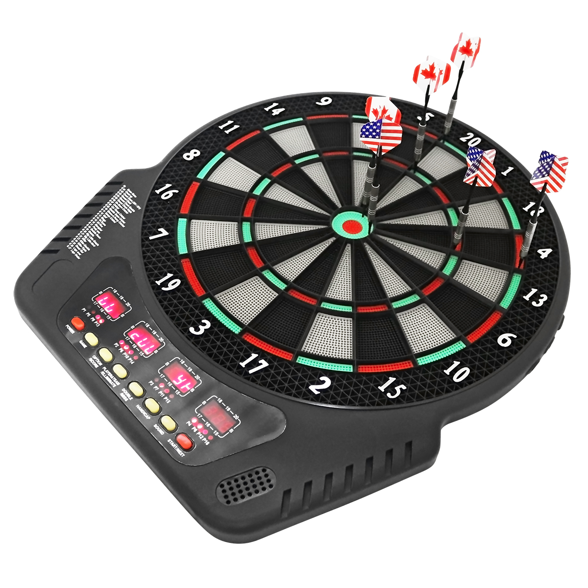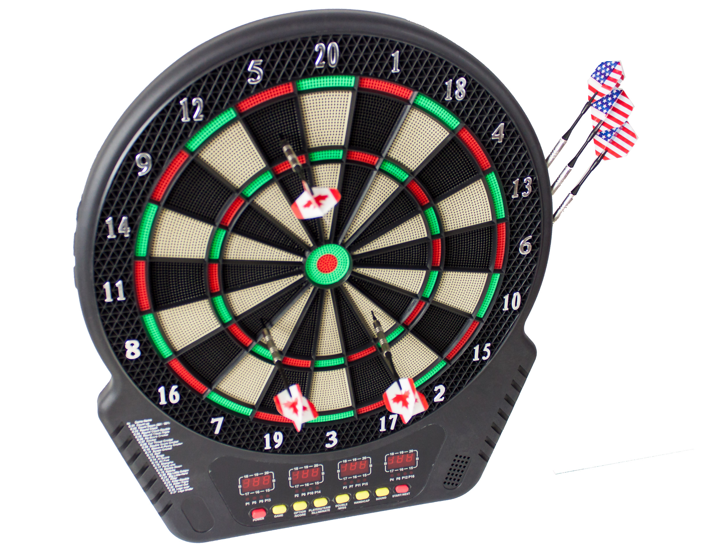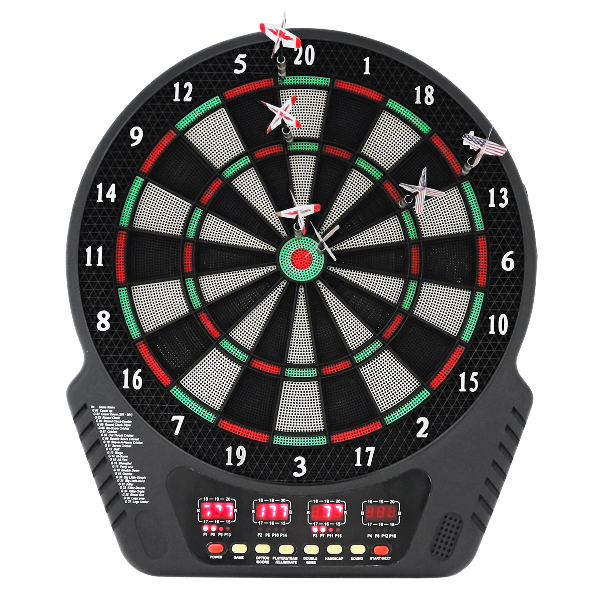 Kvalitní elektronický terč od značky Sportvida. Terč má čtyři displeje pro zobrazení aktuálního skóre. Terč lze využívat buď to na tužkové baterie nebo na kabel do zásuvky, který je součástí balení. Součástí balení jsou šipky a náhradní hroty.