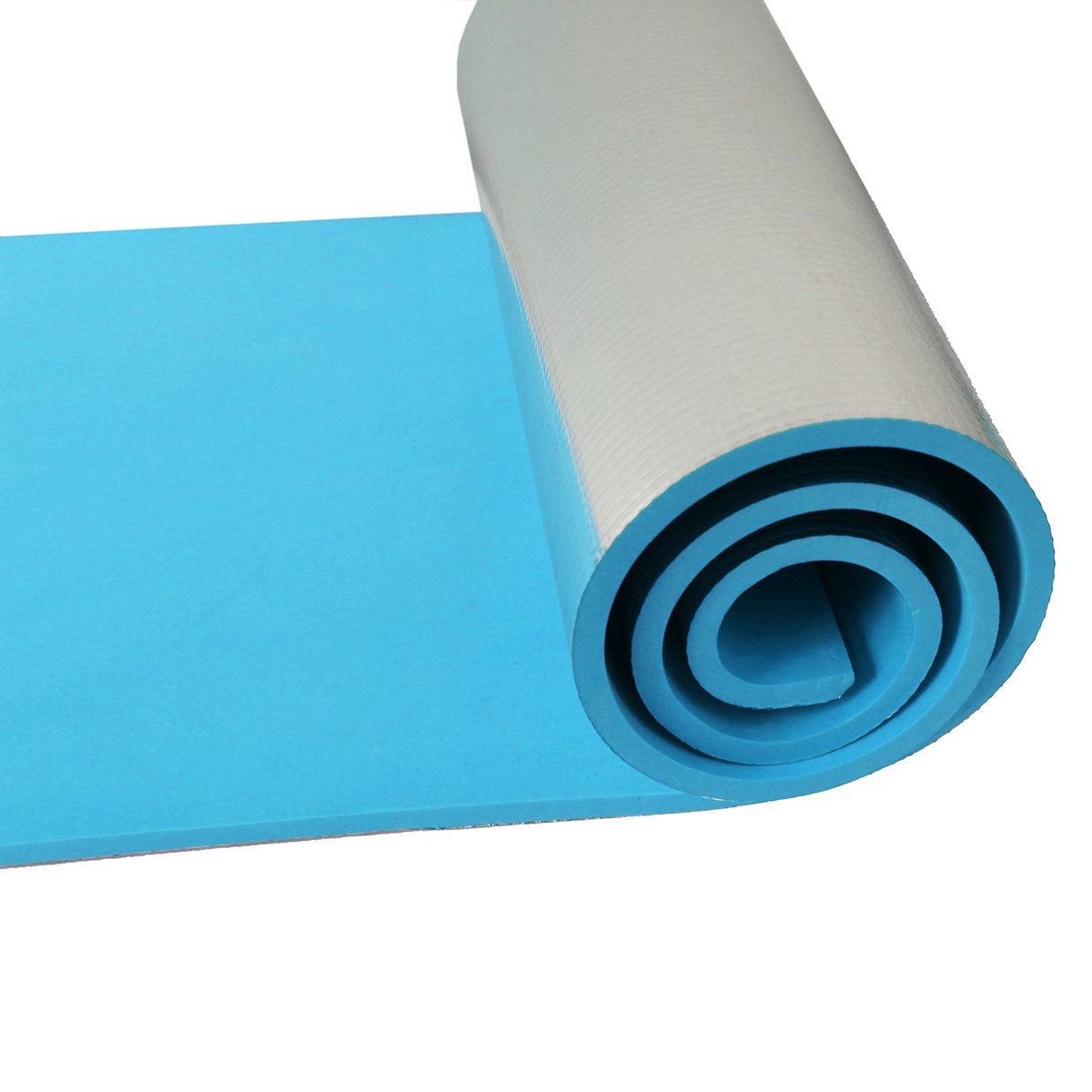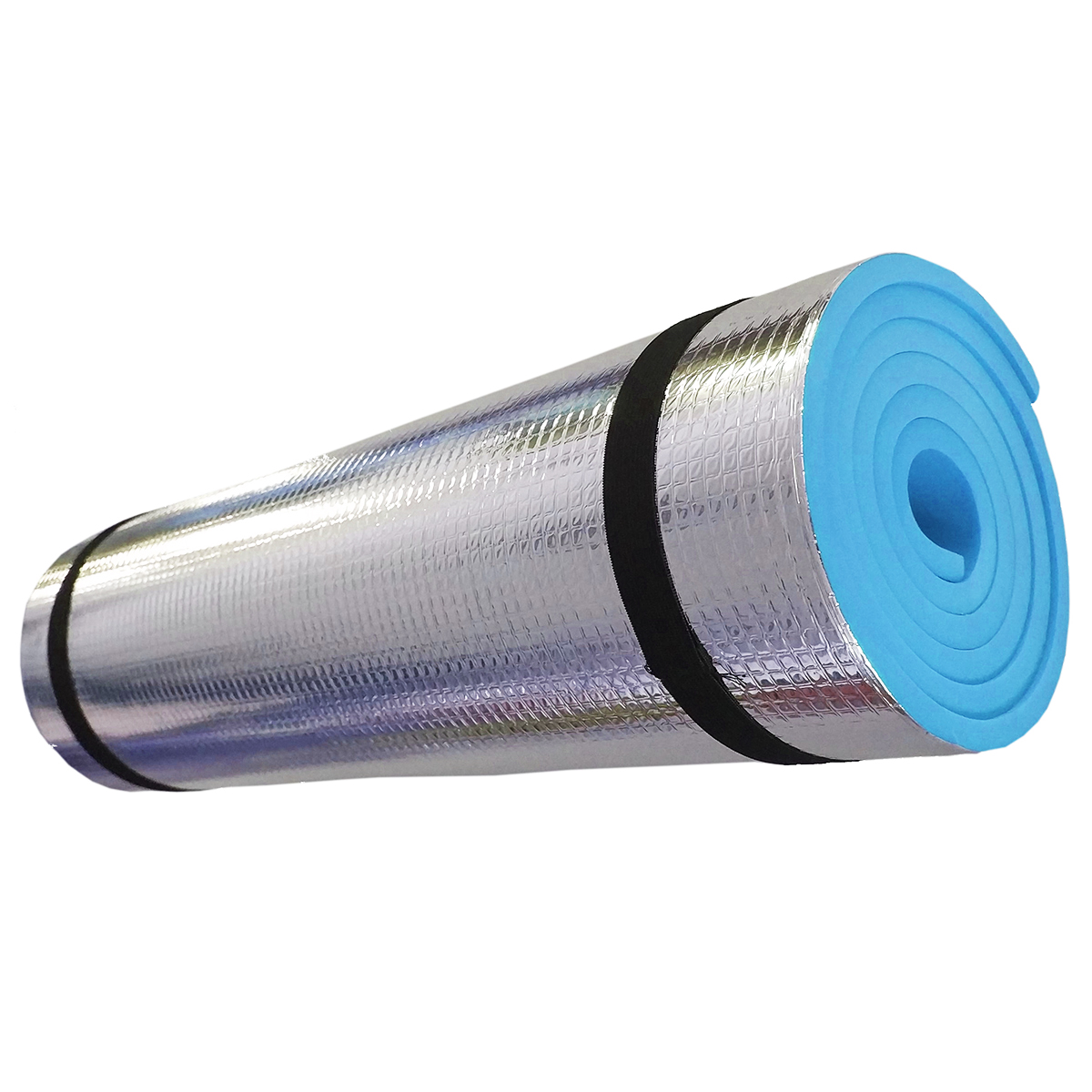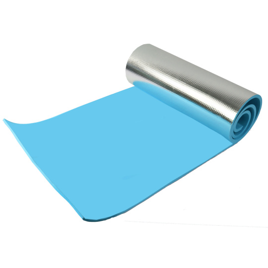 Karimatka s hladkým povrchom a spodnou stranou z ALU fólie. Karimatka je vhodná pre camping, turistiku, alebo ako podložka pri vode či na piknik. Kombinácia penového EVA materiálu a hliníkové vrstvy zaručuje pohodlie a zároveň chráni pred chladom a vlhkom. Karimatku možné jednoducho zrolovať a zaistiť pomocou gumičiek, je ľahká a ľahko prenosná.