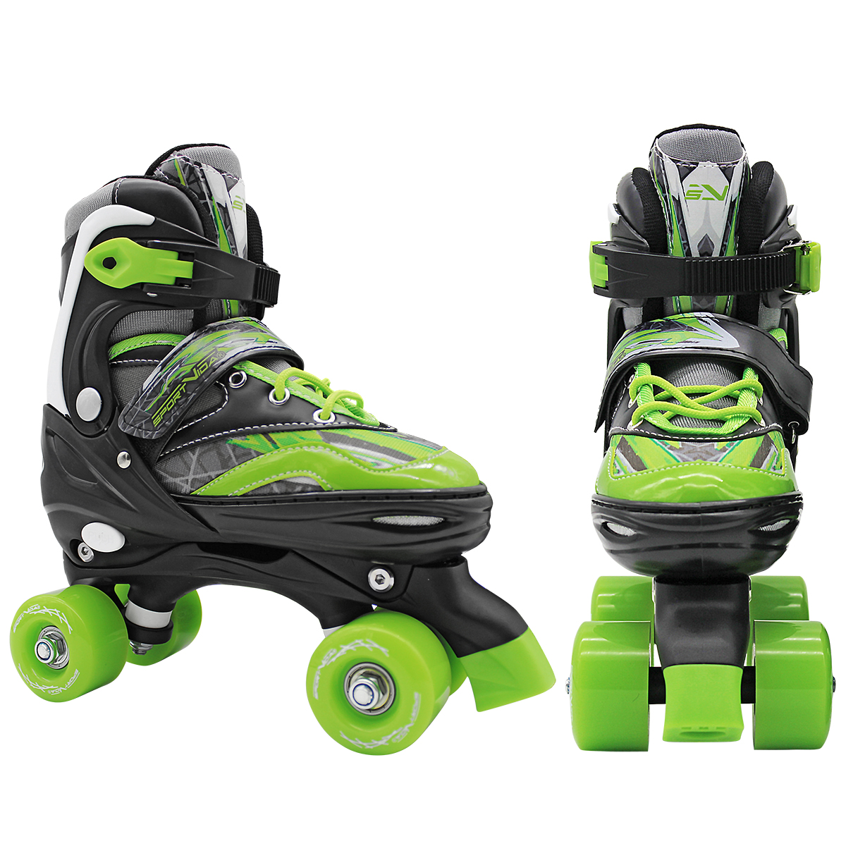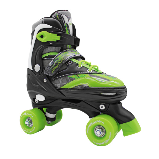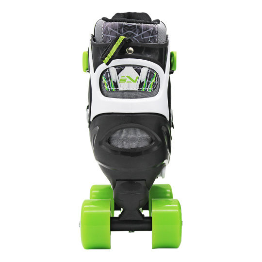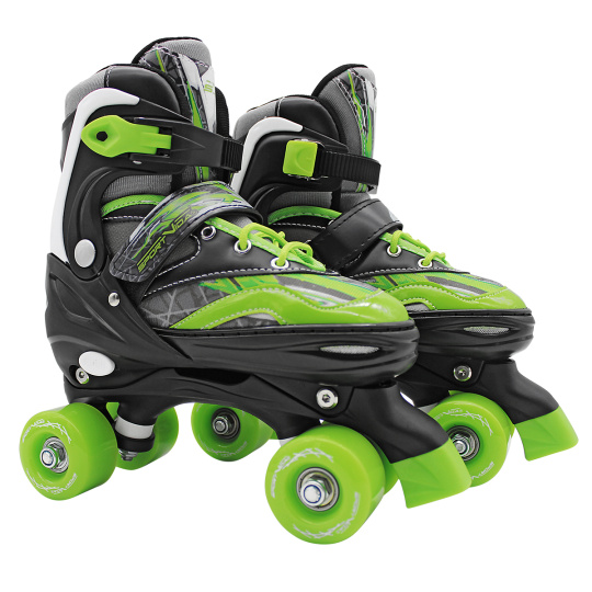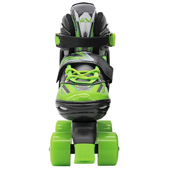 Nastaviteľné detské korčule pre začínajúcich korčuliarov. Vďaka možnosti dať kolieska do zadnej pozície vedľa seba sú korčule ideálne na učenie korčuľovanie. Gumené kolesá nerobia hluk ako plastové kolesá, nekĺzajú po povrchu, vďaka čomu je jazda oveľa stabilnejšia. Taktiež nehrozí rozbitie kolesa počas jazdy. Bezpečnostná brzda a šír