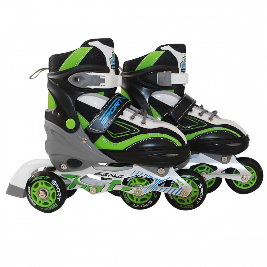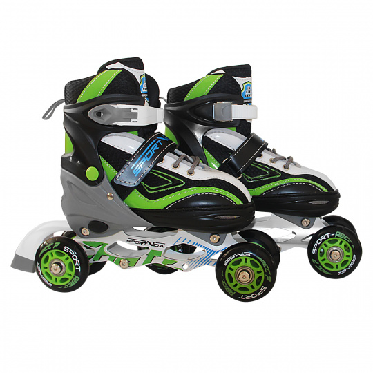 Nastaviteľné detské korčule pre začínajúcich korčuliarov. Vďaka možnosti dať kolieska do zadnej pozície vedľa seba sú korčule ideálne na učenie korčuľovanie. Gumené kolesá nerobia hluk ako plastové kolesá, nekĺzajú po povrchu, vďaka čomu je jazda oveľa stabilnejšia. Taktiež nehrozí rozbitie kolesa počas jazdy. Bezpečnostná brzda a šír