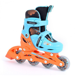 Nastaviteľné detské korčule pre začínajúcich korčuliarov. Vďaka možnosti dať kolieska do zadnej pozície vedľa seba sú korčule ideálne na učenie korčuľovanie.
