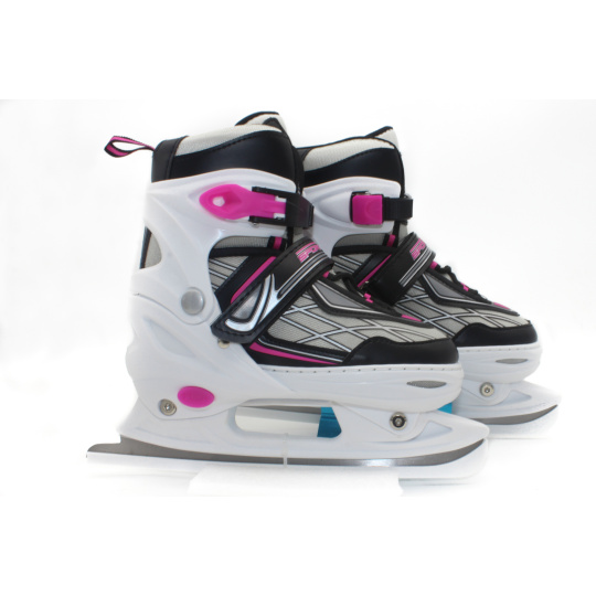 Kolieskové korčule s vymeniteľným zimným nožom a nastaviteľnou veľkosťou. Ideálne korčule pre celoročné využitie. Viacúrovňové zapínanie na šnúrky, suchý zips a spona spevní členok a zaistí pohodlnú jazdu. Hliníkový podvozok a kvalitné ložiská zaručujú stabilitu kolieskovej korčule. Kolieskové korčule ľahko vymeníte za zimný nôž na ľadovú