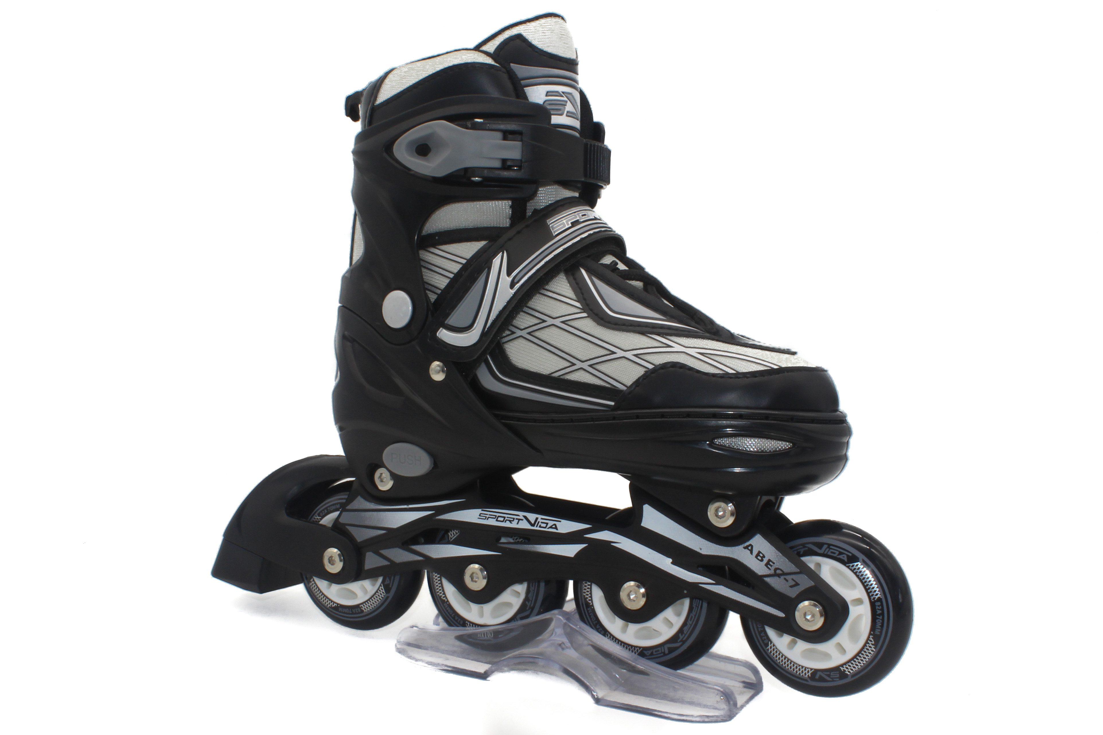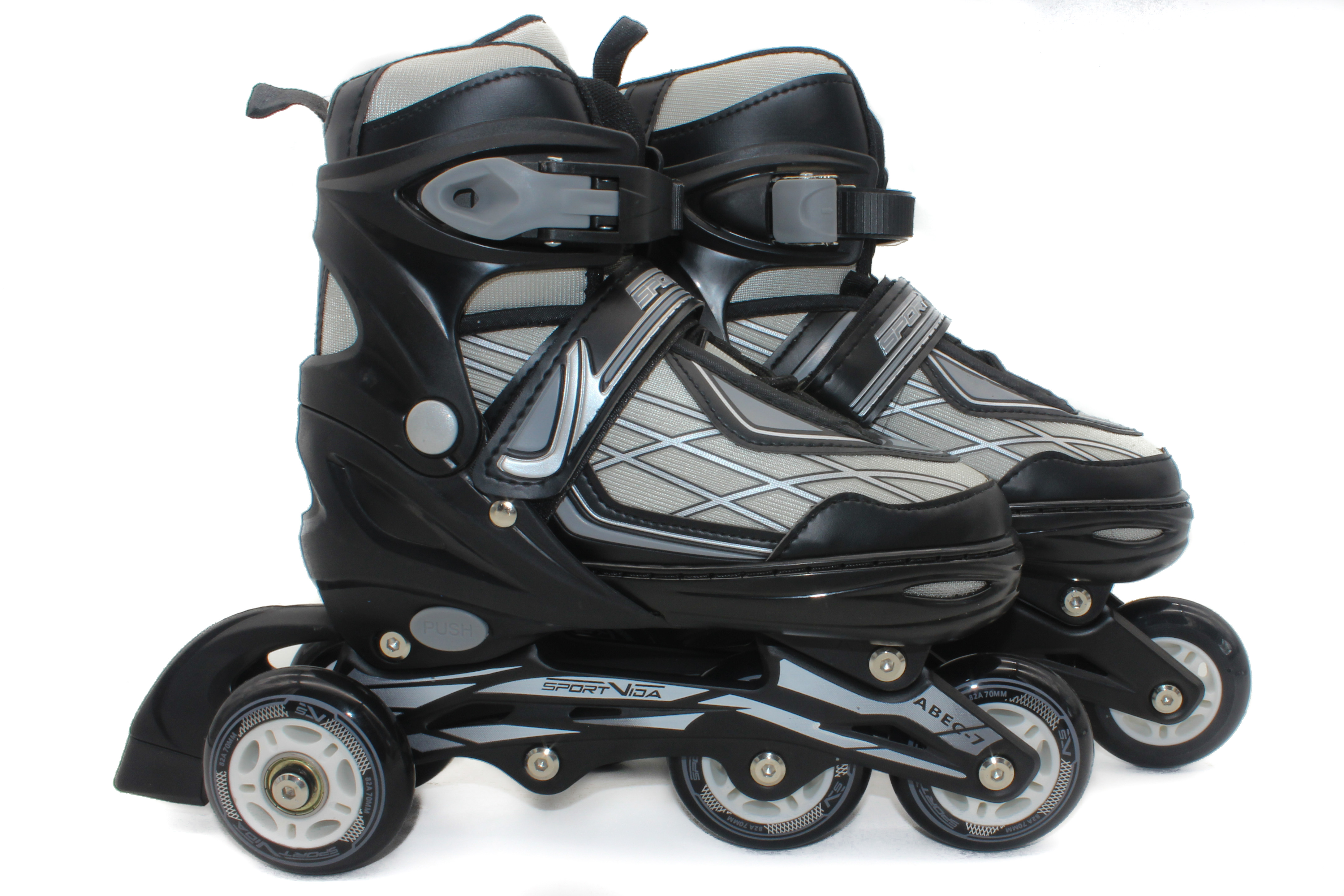 Nastaviteľné kolieskové korčule s hliníkovým rámom od značky Sportvida Nastaviteľná veľkosť: 39-42 Veľkosť vložky v centimetroch: 23,5 cm - 26,0 cm Korčule s veľmi dobrými technickými parametrami: hliníkový podvozok, ložiska Abec-7 Carbon a PU gumové kolieska zaisťujú dlhodobé používanie a vysoký komfort pri jazde. Úprava veľkosti umož