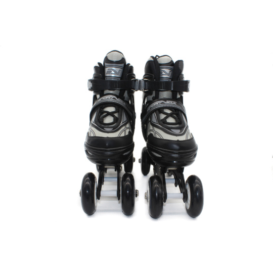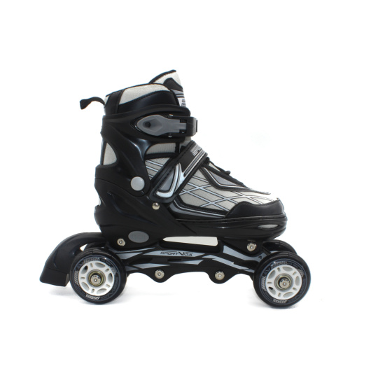 Kolieskové korčule s vymeniteľným zimným nožom a nastaviteľnou veľkosťou. Ideálne korčule pre celoročné využitie. Viacúrovňové zapínanie na šnúrky, suchý zips a spona spevní členok a zaistí pohodlnú jazdu. Hliníkový podvozok a kvalitné ložiská zaručujú stabilitu kolieskové korčule. Kolieskové korčule ľahko vymeníte za zimný nôž na ľadovú