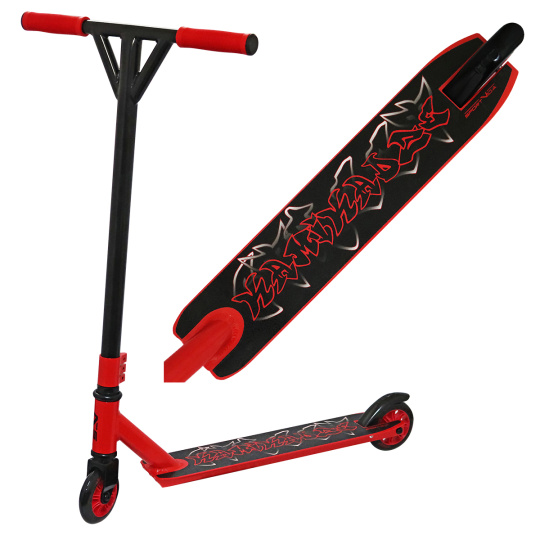 Výkonná freestylová kolobežka s ložiskami ABEC-7 Carbon, vďaka ktorým ponúka veľmi dobrý športový zážitok za málo peňazí. Pevné oceľové riadidlá s možnosťou otáčania o 360 stupňov ponúka priestor na vytváranie mnohých freestylových trikov. Kolobežka vďaka svojej nostnost až 100 kg je určená ako pre malé jazdca tak i pre dospelých.