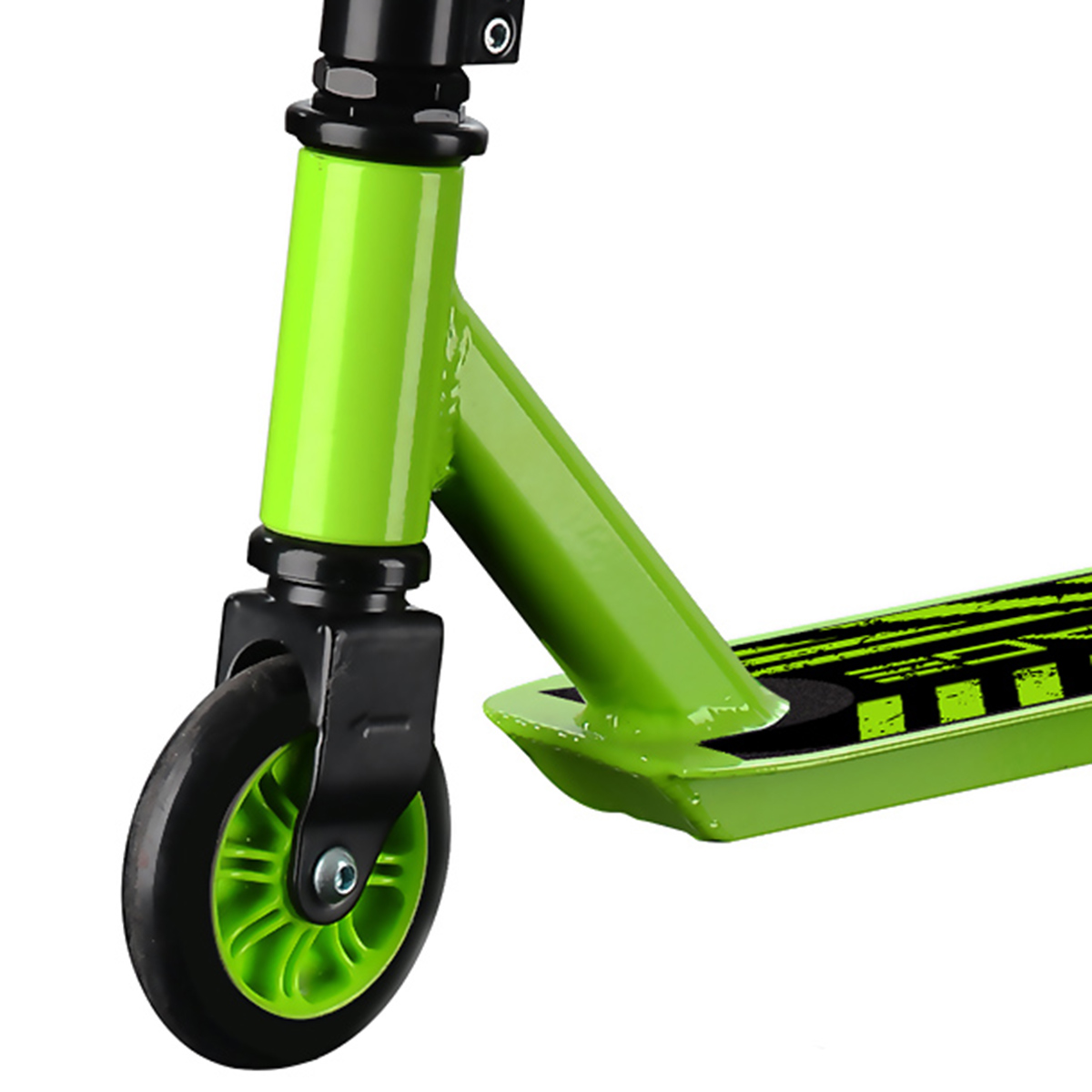 Výkonná freestylová kolobežka s ložiskami ABEC-7 Carbon, vďaka ktorým ponúka veľmi dobrý športový zážitok za málo peňazí. Pevné oceľové riadidlá s možnosťou otáčania o 360 stupňov ponúka priestor na vytváranie mnohých freestylových trikov. Kolobežka vďaka svojej nostnost až 100 kg je určená ako pre malé jazdca tak i pre dospelých.