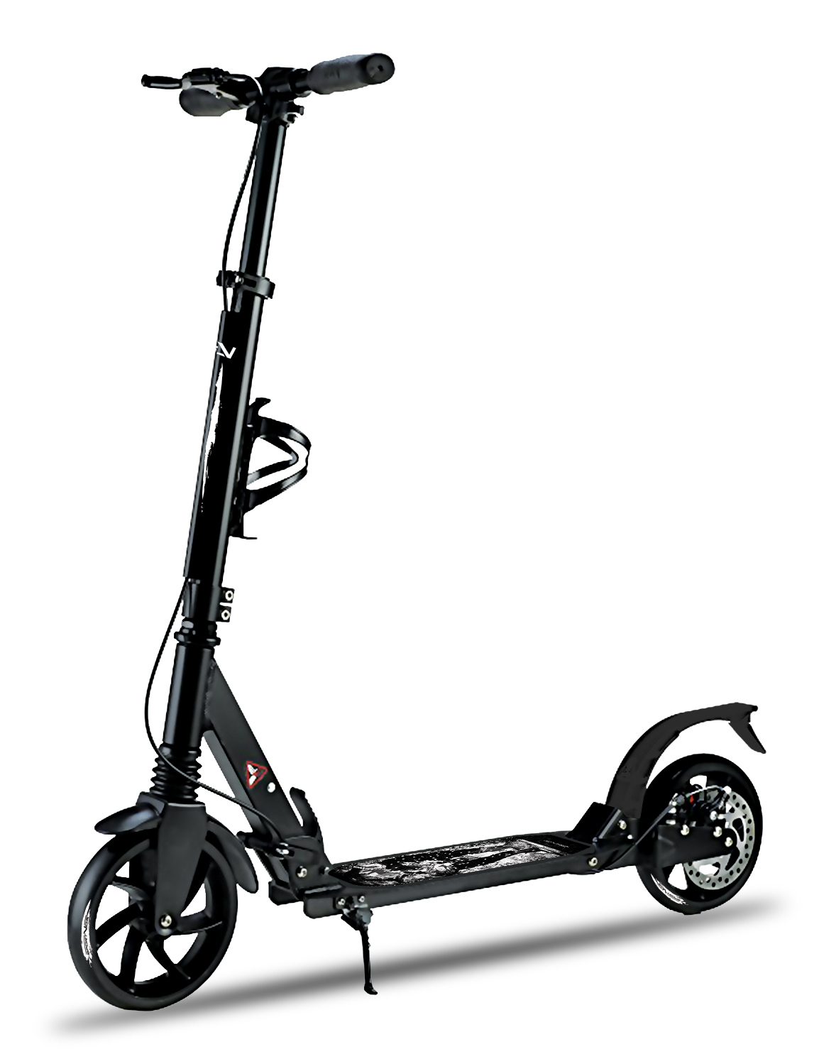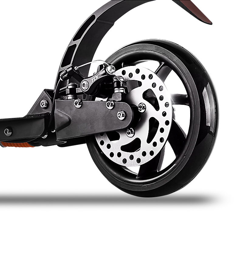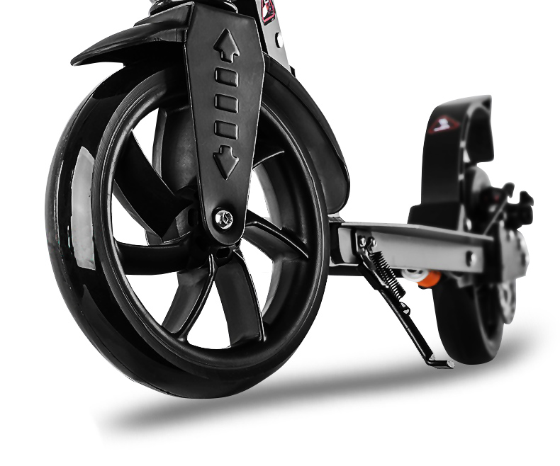 Kolobežka je vyrobená z materiálov najvyššej kvality. Kolobežka má predné koleso veľkosti 230 mm a zadné koleso s veľkosťou 200 mm, zadné koleso je zároveň vybavené brzdou, ktorá zároveň slúži ako blatník a je vybavený odrazkou, ktorá zabezpečuje väčšiu viditeľnosť užívateľa a tým aj väčšiu bezpečnosť.