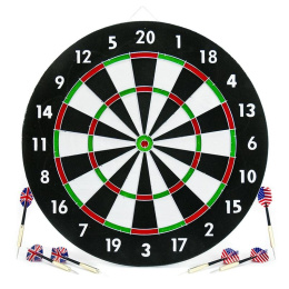 Vysoko kvalitný obojstranný terč na šípky, ideálny pre profesionálnych a začínajúcich hráčov. Súčasťou balenia je vločkovaný papierový terč (18 "x 1") s drôteným pavúkom a sada šiestich šípok STEELTIP s hmotnosťou 18 g. Štít má rúčku na zavesenie.