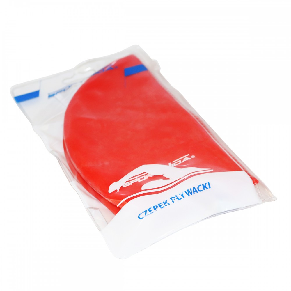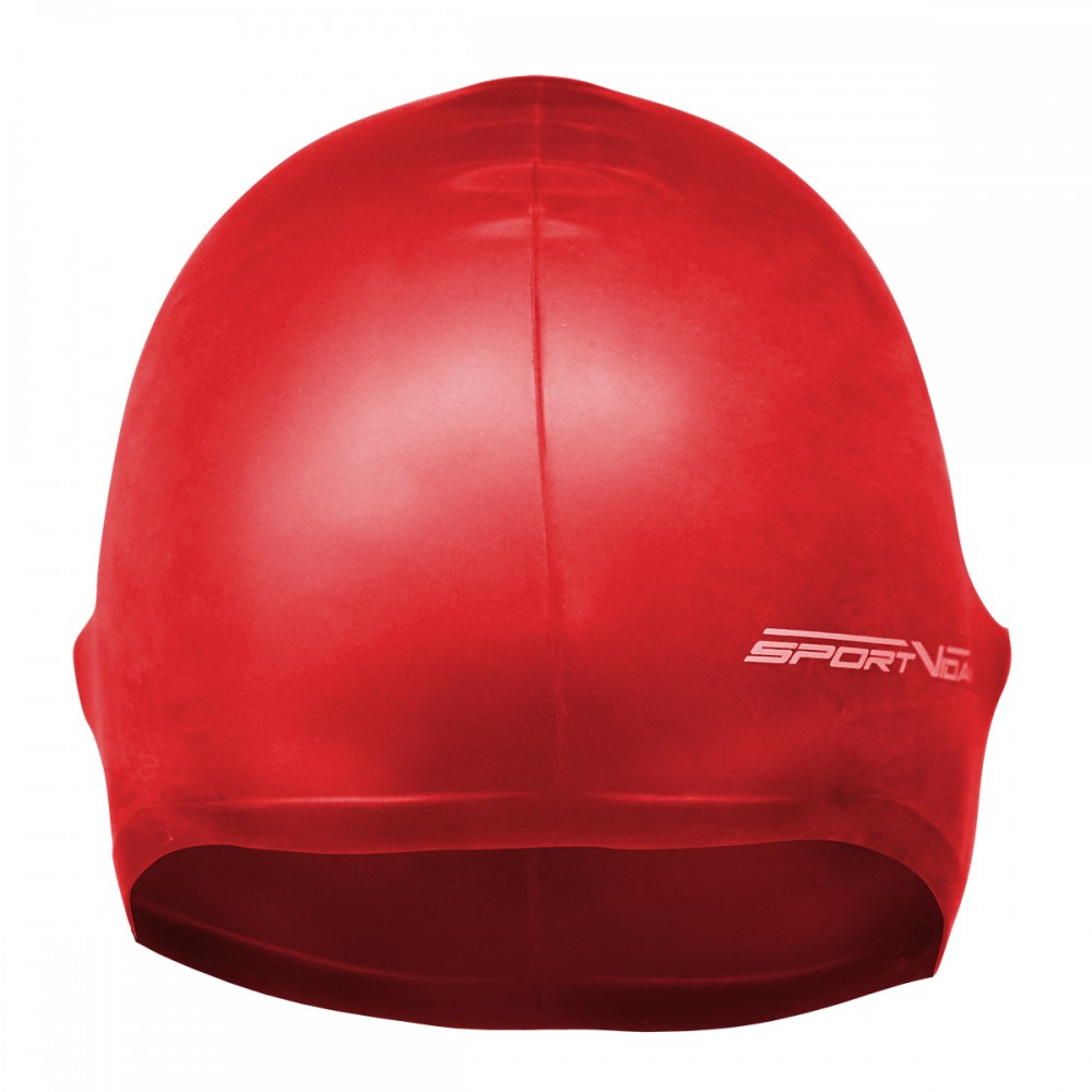 Plavecká čiapka červenej farby. Vhodný a štýlový doplnok na plávanie. Zabraňuje namáčaniu vlasov.