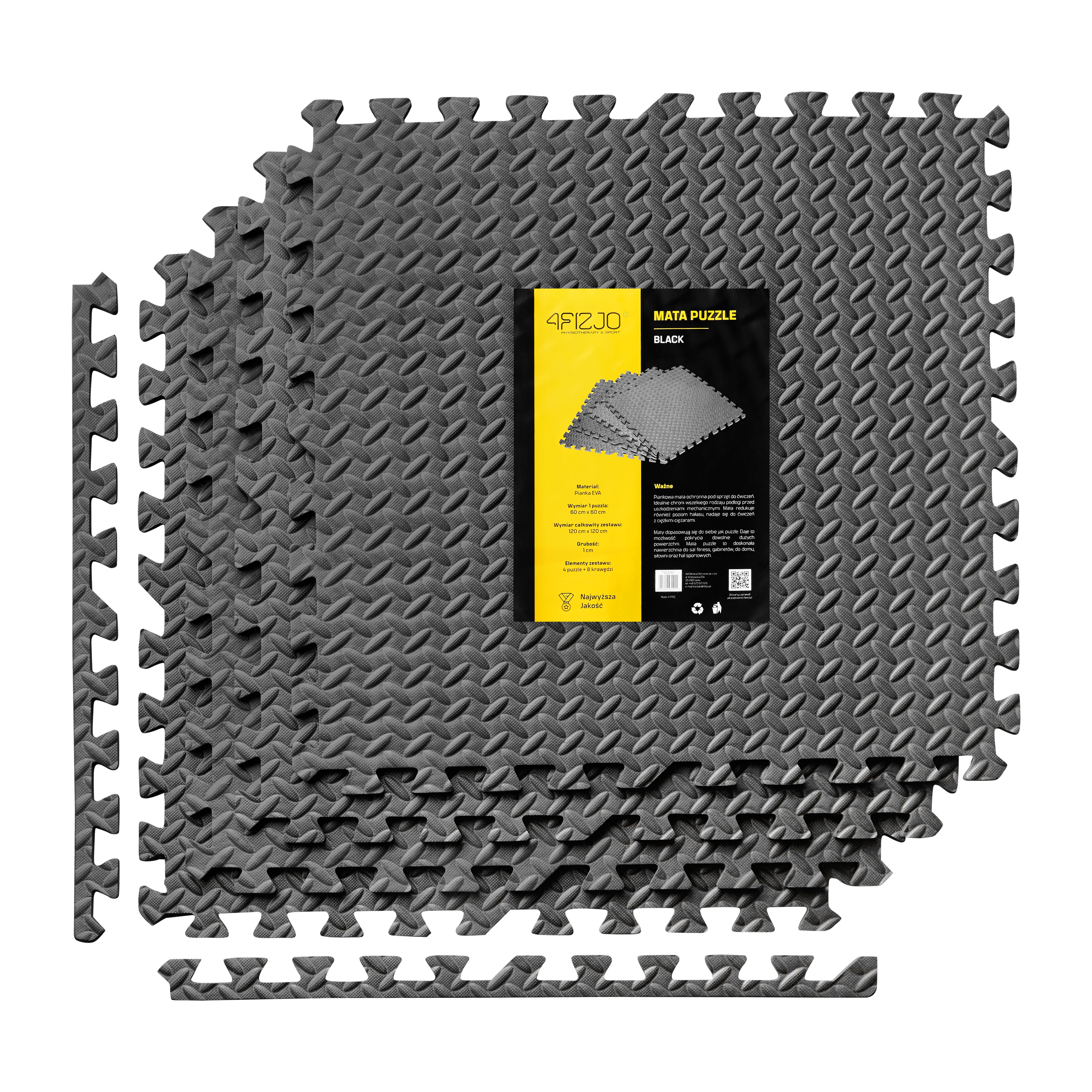 Podložka na cvičenie - Tatami Puzzle 4ks bal. 60 x 60 x 1 cm 4Fizjo čierna