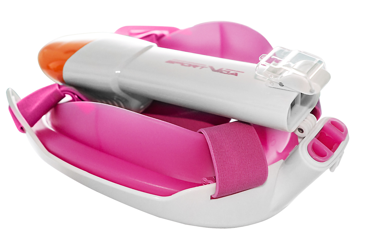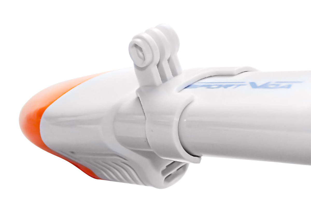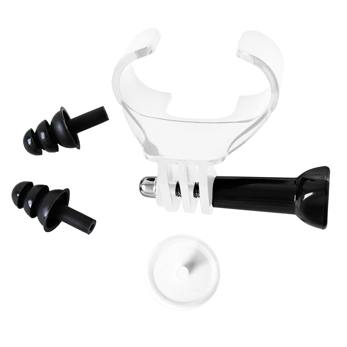 Celotvárová šnorchlovacie maska na potápanie. Skladací šnorchel so suchým horným ventilom zabraňuje preniknutiu vody do masky. Súčasťou balenia je držiak pre pripevnenie športové kamery a upchávky do uší.