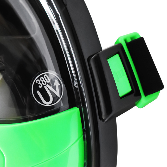 Celotvárová šnorchlovacie maska na potápanie. Odopínacie šnorchel so suchým horným ventilom zabraňuje preniknutiu vody do masky. Súčasťou balenia je držiak pre pripevnenie športové kamery.