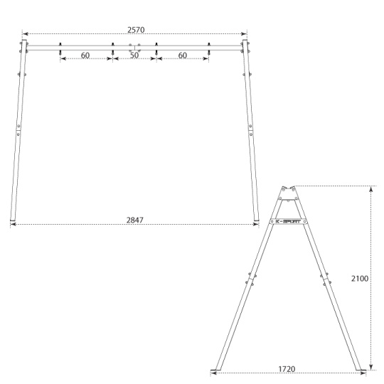 Horný nosník má štyri háky, na ktoré je možné namontovať bocianie hniezdo, hojdačku alebo sedlo. Štruktúra je prispôsobená inštalácii a použitiu dvoch zariadení súčasne.