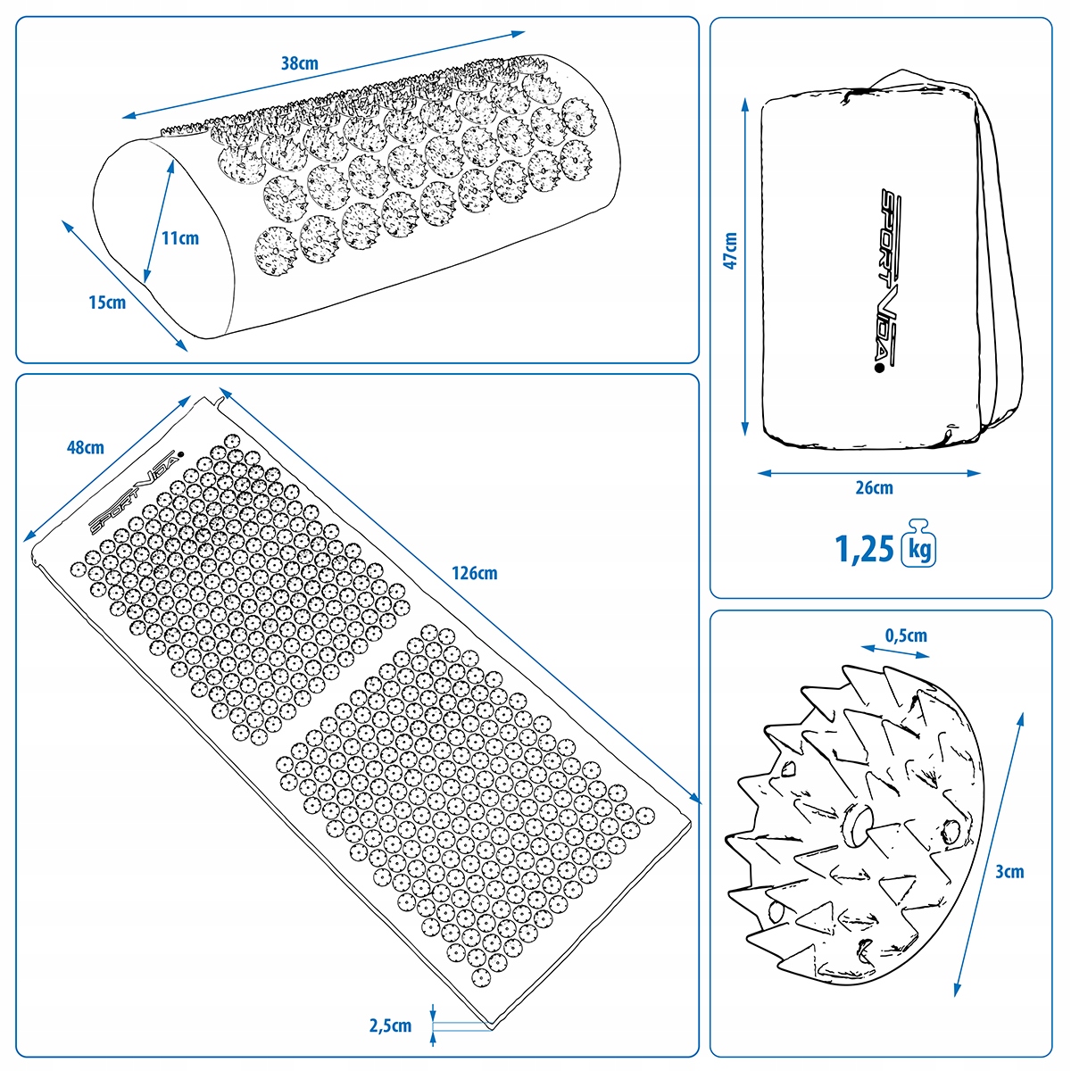 Súprava podložky + akupresúrny vankúš SPORTVIDA.