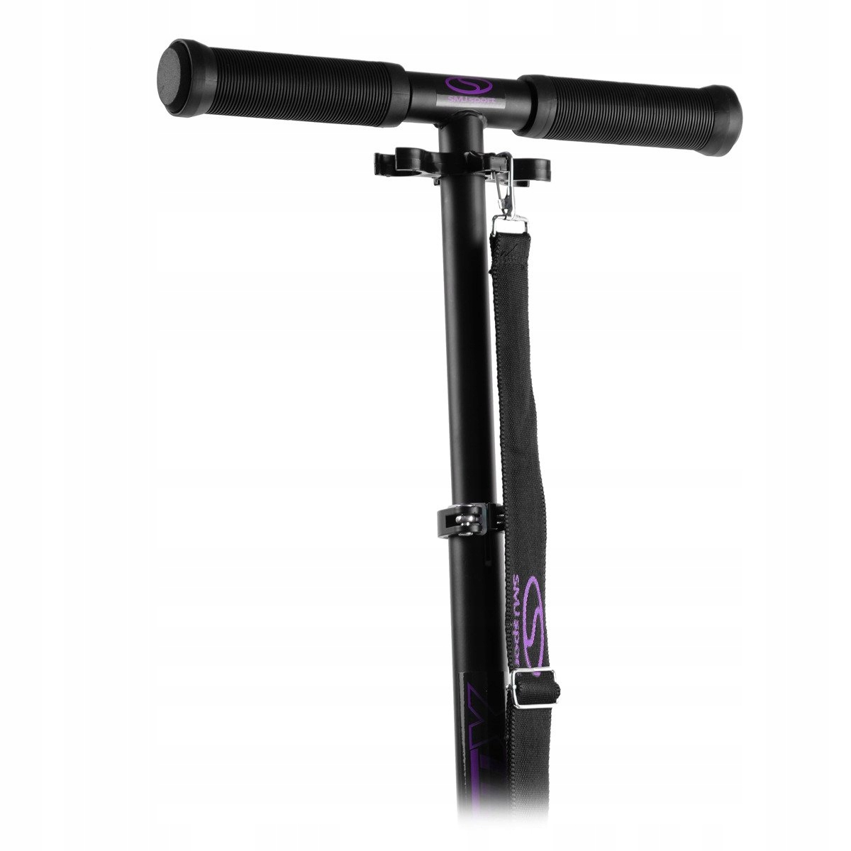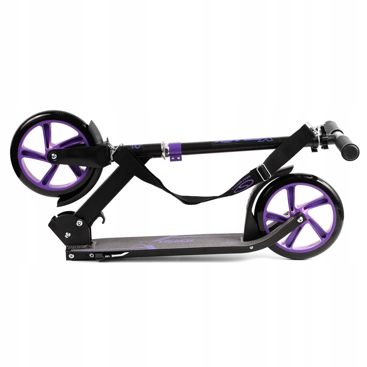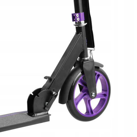 Súčasťou balenia je aj pásik na jednoduchšie prenášanie kolobežky. Kolobežka má rovnako predný blatník. K lepšiemu odstavenie kolobežky pomáha praktický bočný stojan.