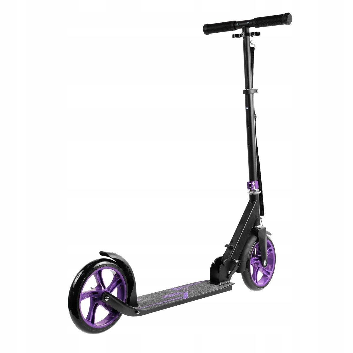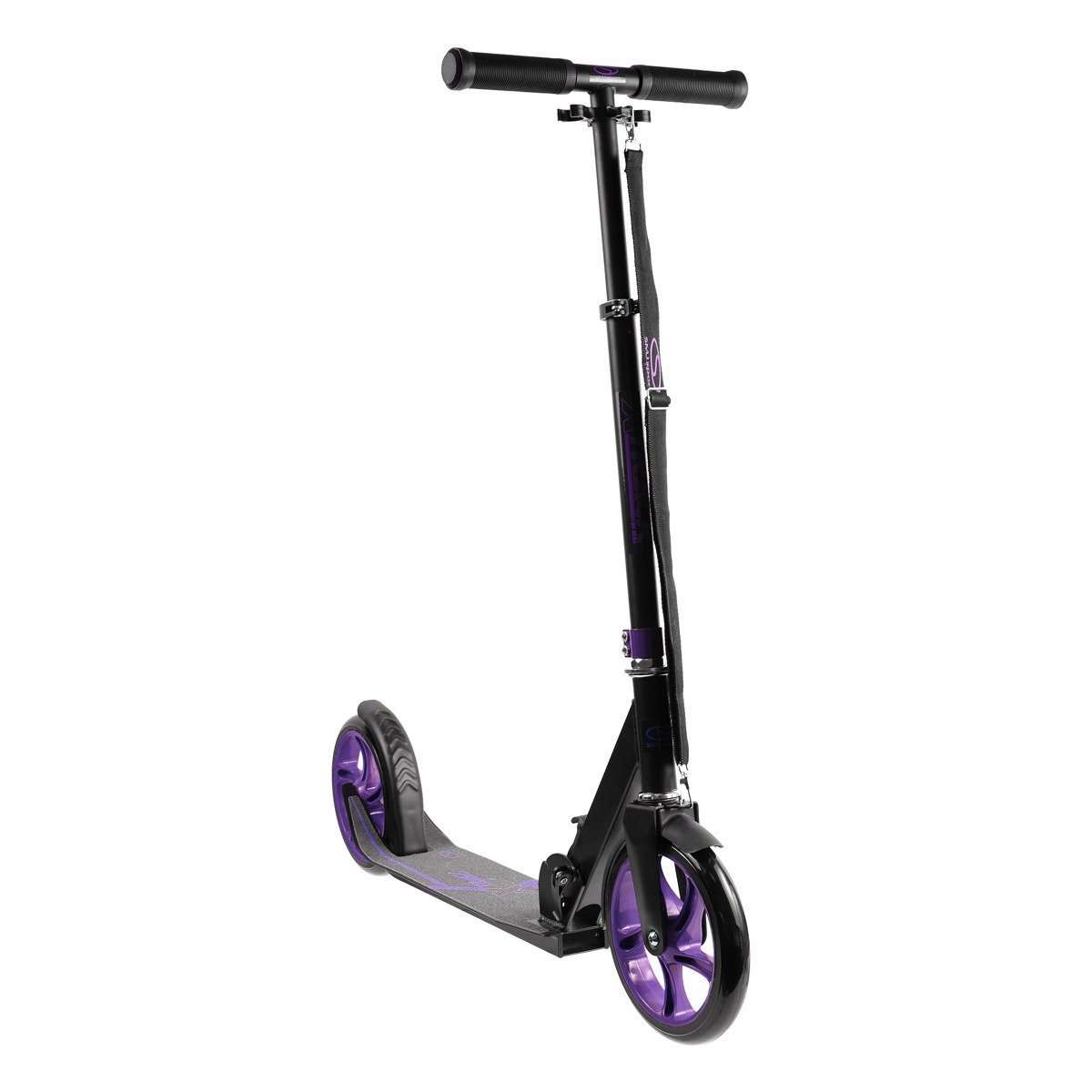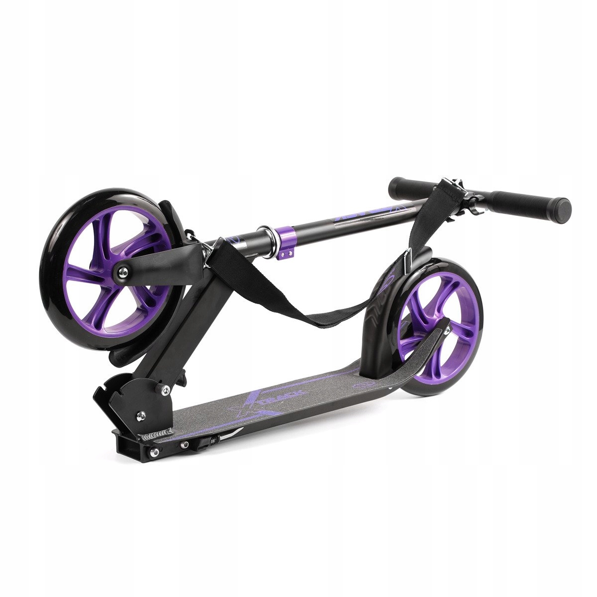 Súčasťou balenia je aj pásik na jednoduchšie prenášanie kolobežky. Kolobežka má rovnako predný blatník. K lepšiemu odstavenie kolobežky pomáha praktický bočný stojan.