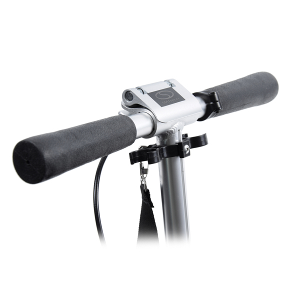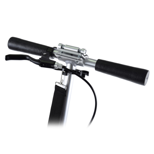 Súčasťou balenia je aj pásik na jednoduchšie prenášanie kolobežky. Kolobežka má rovnako bočný stojan pre ľahšie parkovanie.