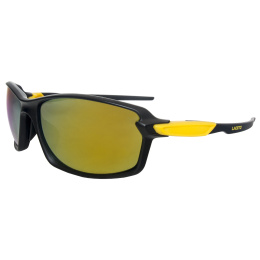 Čierne slnečné okuliare značky Laceti DOOM so žltými detaily, vhodné pre šport aj bežné nosenie. Sú vybavené REVO žltými sklami a protišmykovými nosníky a koncovkami. Kategórie podľa stupňa protislnečnej ochrany je na tretej úrovni a použité filtre sú 100% UVA, UVB a UVC.