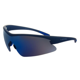 Čierne slnečné okuliare značky Laceti LT-SA1316-B s modrými detailmi a pogumovaným povrchom, vhodné pre bežné nosenie. Sú vybavené REVO modrými sklami. Kategórie podľa stupňa protislnečnej ochrany je na tretej úrovni a použité filtre sú 100% UVA, UVB a UVC.
