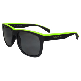 Čierne slnečné okuliare Laceti RONALD pre bežné nosenie. Okuliare majú matný čierny rámik so zelenými detaily a dymová skla s kategóriou filtra 3, takže priepustnosť svetla je 8-18%. Použité filtre sú 100% UVA, UVB a UVC.
