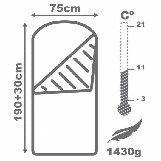Hmotnost spacího pytle bez obalu: 1,4 kg