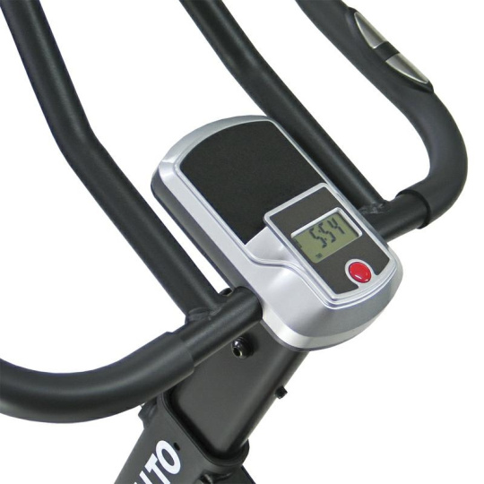 Bicykel má batériový tréningový počítač. Uvidíte najdôležitejšie parametre, ako sú: čas, rýchlosť, vzdialenosť, kalórie, pulz. Na riadidlách sú dotykové senzory, ktoré umožňujú merať tep. Zariadenie si ľahko prispôsobíte svojej výške nastavením výšky sedla a riadidiel. Výhodou tohto modelu sú transportné kolieska uľahčujúce prepravu. Bicykel je vybavený držiakom na mobilné zariadenie, ktorý umožňuje sledovanie filmov počas tréningu.