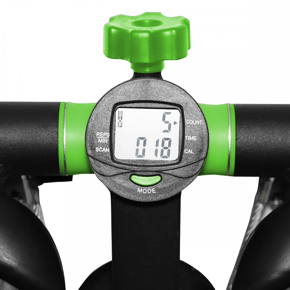 Pevný kovový rám a protišmykové gumové nášľapy zaisťujú stabilitu a bezpečnosť pri cvičení. Tréningový počítač zobrazuje všetky dôležité dáta, ako je spotreba kalórií, dĺžka tréningu a počet opakovaní a ďalšie. Vďaka svojej malej veľkosti je možné stepper po tréningu uložiť priestorovo úsporným spôsobom. Cvičte stepperom nohy, boky a gluteálne svaly.