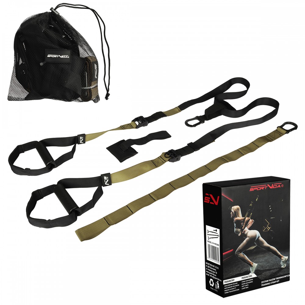 Cvičebné pásy sú ideálnym variantom pre spestrenie tréningu pre pokročilých a skvelým začiatkom pre fitness nadšencov. Môžete ich použiť na vykonanie viac ako 300 cvičení s váhou vlastného tela. Ich multifunkčnosť umožňuje cvičenia zamerané na spaľovanie tukov, budovanie svalového tkaniva a zlepšovanie flexibility. Ich inštalácia je veľmi jednoduchá, sada obsahuje špeciálnu „zástrčku“ na zavesenie na dvere, ktorá v kombinácii s nízkou hmotnosťou umožňuje cvičiť ako doma, tak si sadu vziať kamkoľvek. Aktivujú mnoho svalových skupín bez toho, aby preťažovali chrbticu.