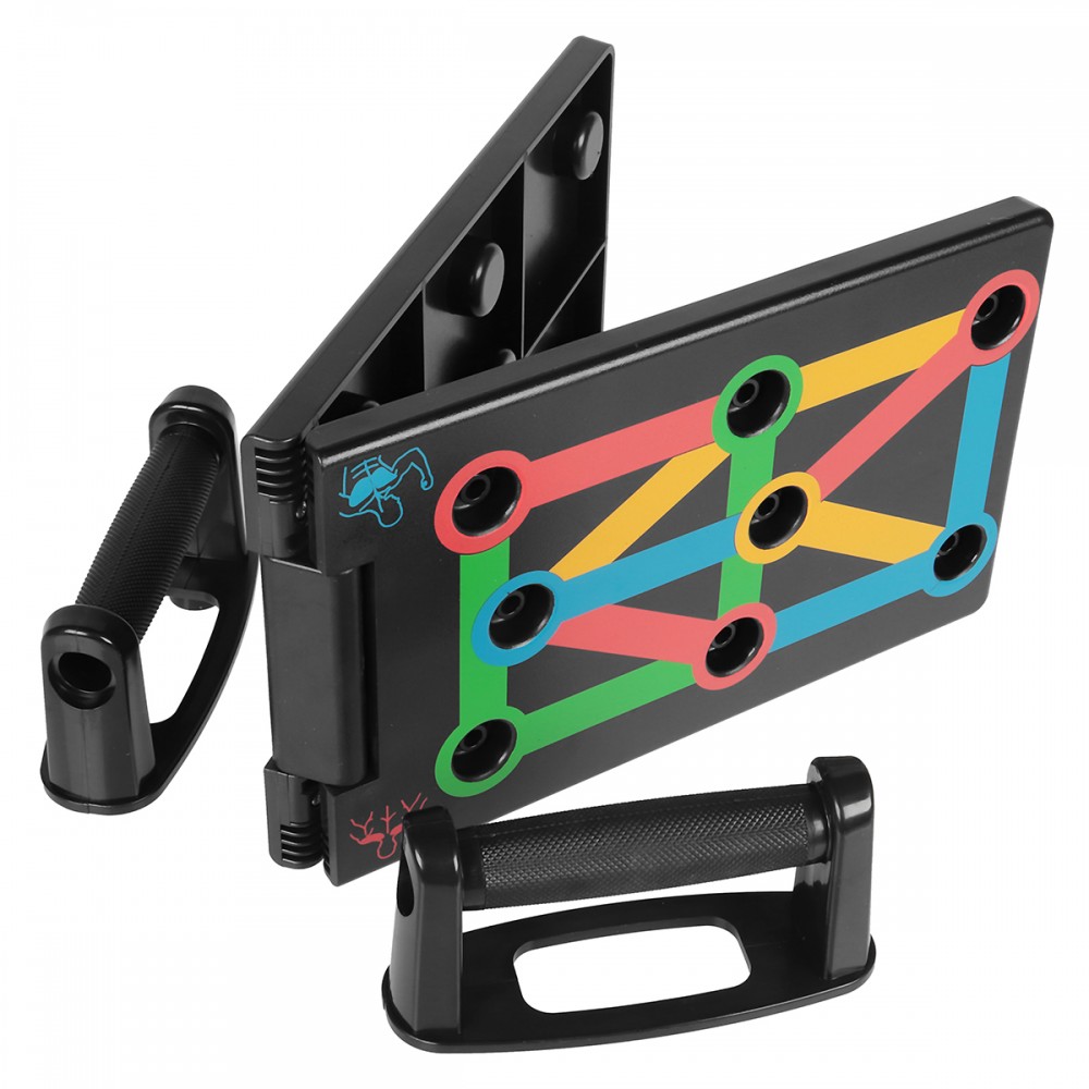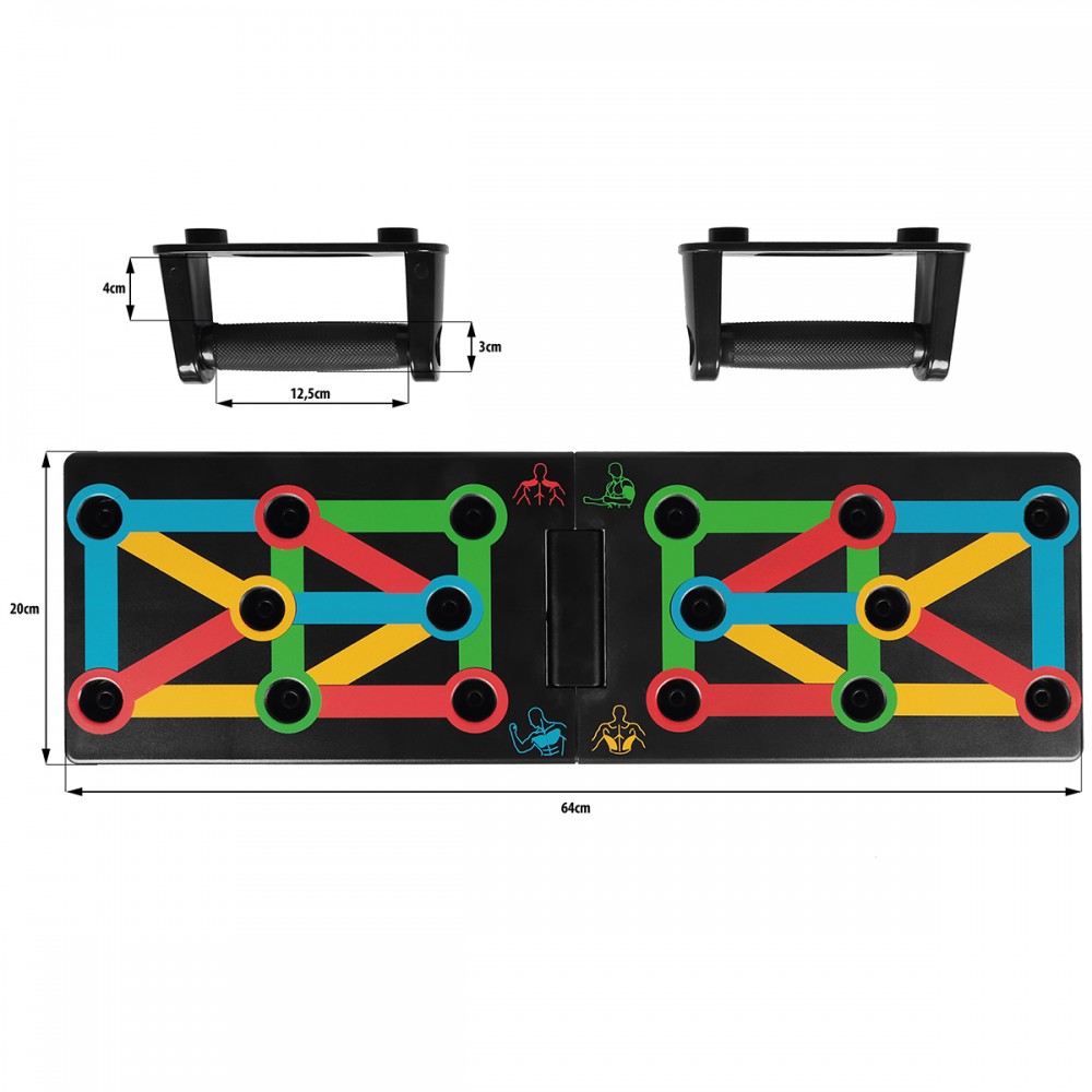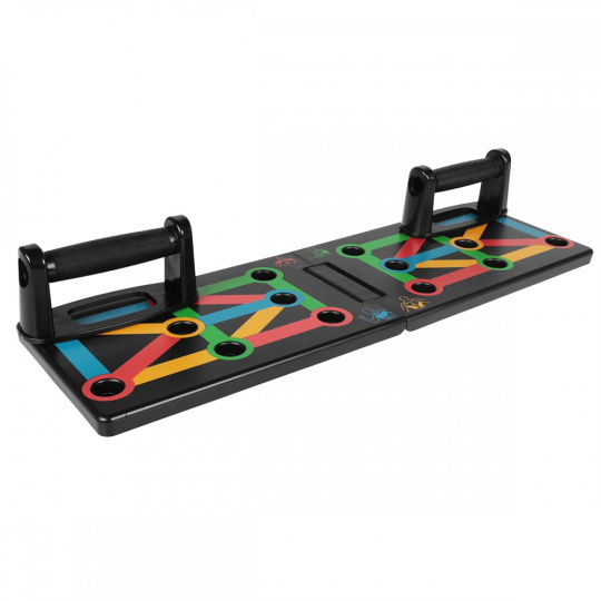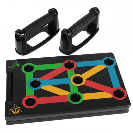 Úchyty na kľučky, ktoré uľahčujú správne držanie tela pri cvičení. Rovnako umožňujú vykonávať niekoľko rôznych nastavení rúk, čo mobilizuje rôzne svalové skupiny na prácu. Vďaka podložke s presným nastavením držania rúk je cvičenie veľmi jednoduché.